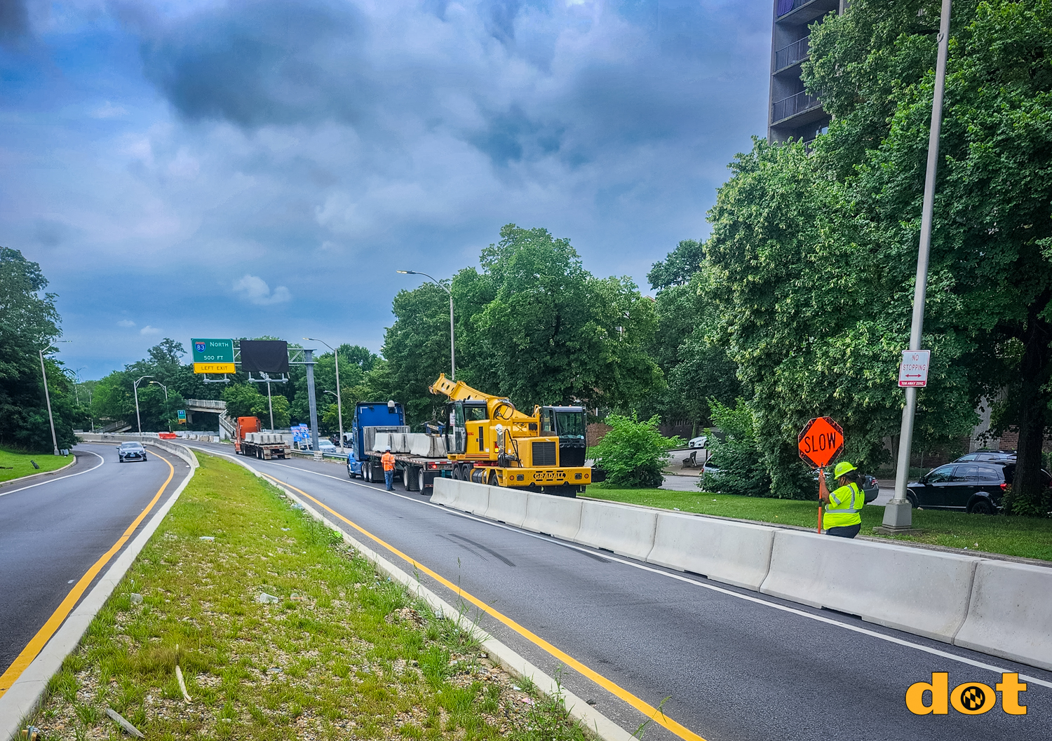 Image: Concrete jersey barriers installed on Druid Park Lake Drive in July 2025 as part of Phase 2.1. |