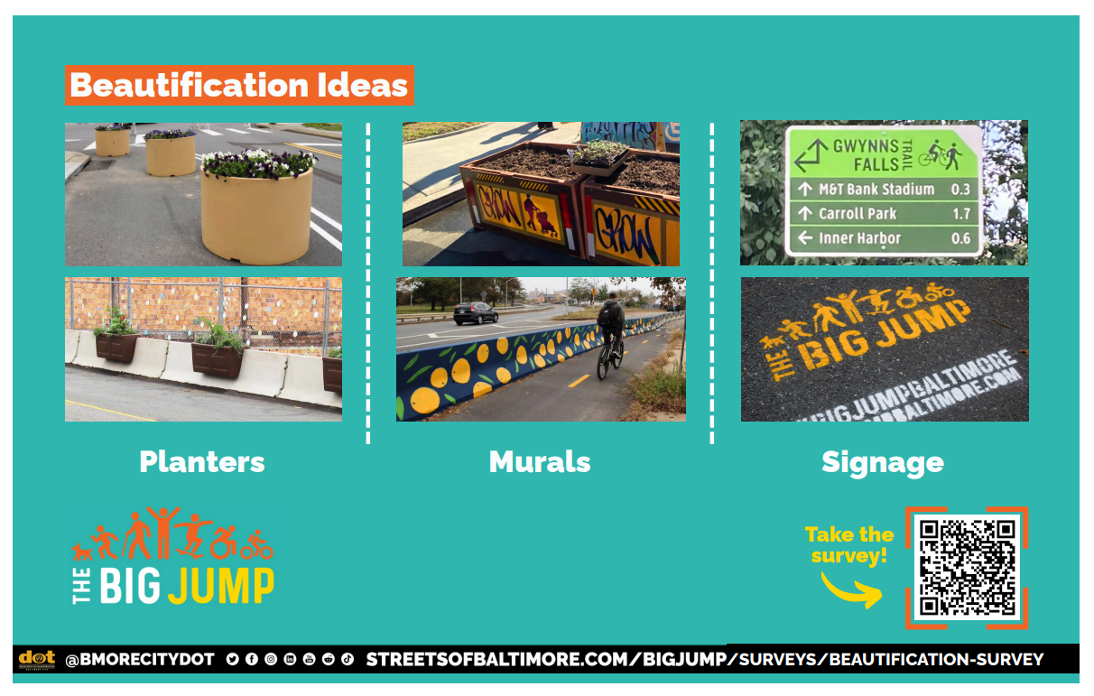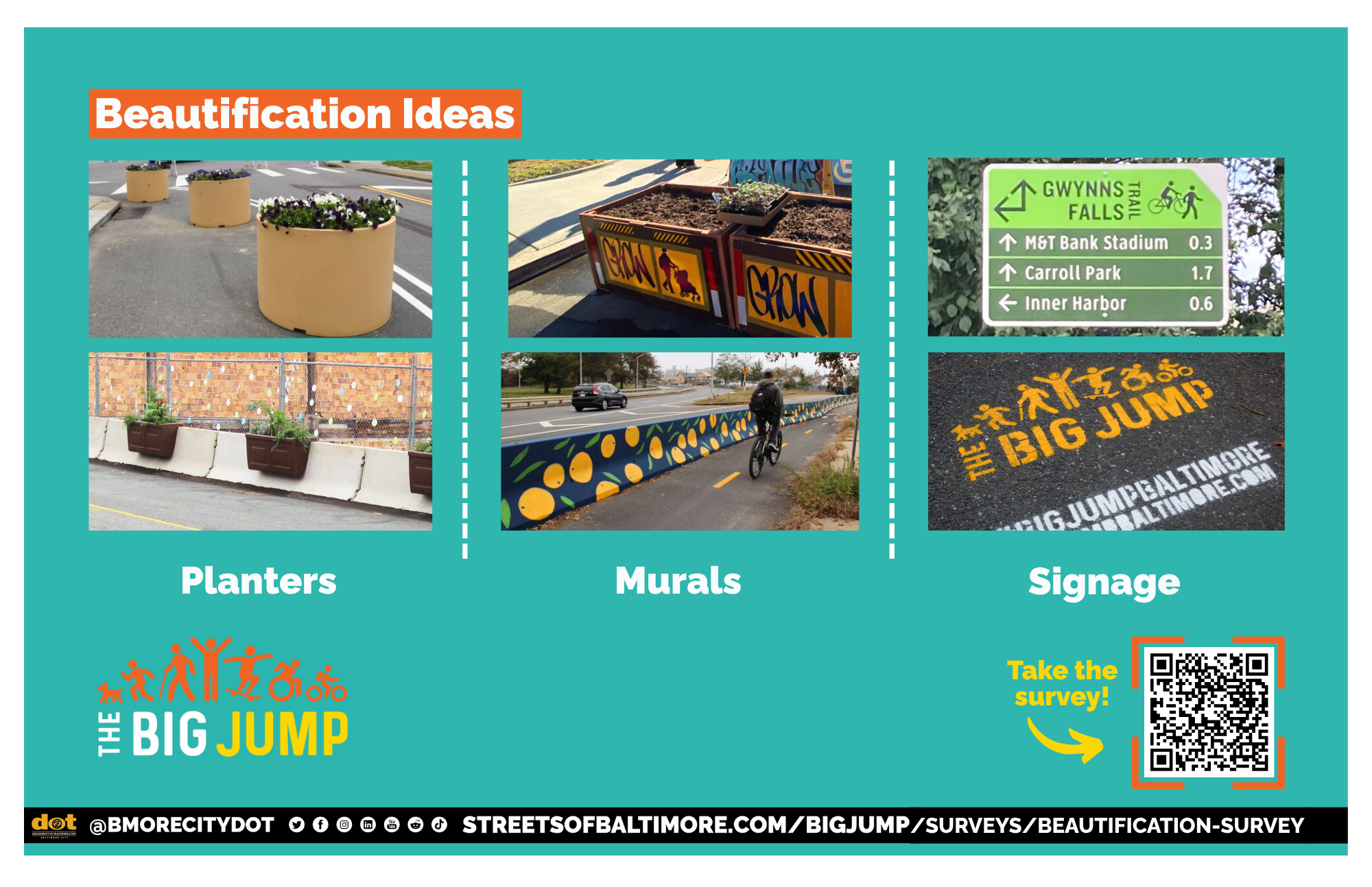 - Phase 2.3 - Improve and beautify the Big Jump with enhancements that may include, but are not limited to signage, paint, and/or planters. (Materials and funding to be determined.)