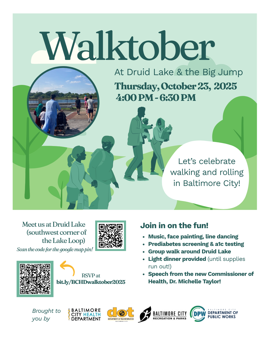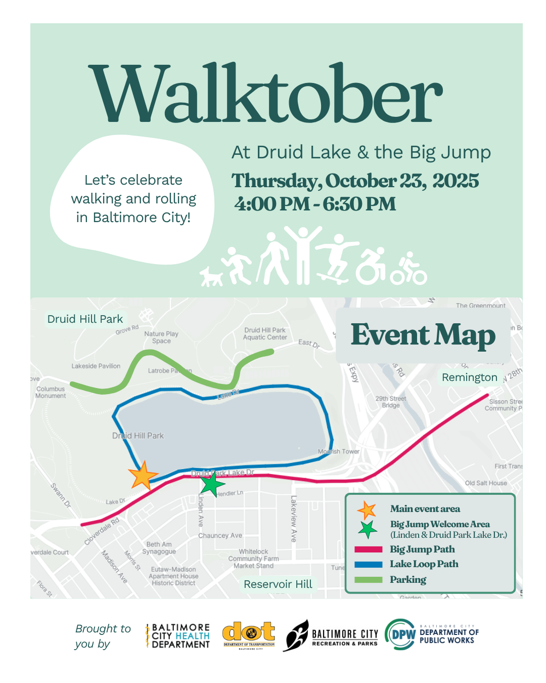 | Walktober at Druid Lake & the Big Jump | October 23, 2025 from 4-6:30pm | Linden Ave & Druid Park Lake Drive intersection; and southwest corner of Lake Loop around Druid Lake | Attended |