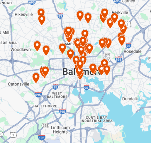 In September, we began outreach to promote the pilot program. We worked with DOT – Community Engagement to provide promotional materials and information on the program to community associations and at citywide events. In addition to Community Engagement’s work, the Transportation Services division attended (virtually or in-person) nine community association meetings and public events, such as Charm City Live and a community resource fair in West Baltimore.