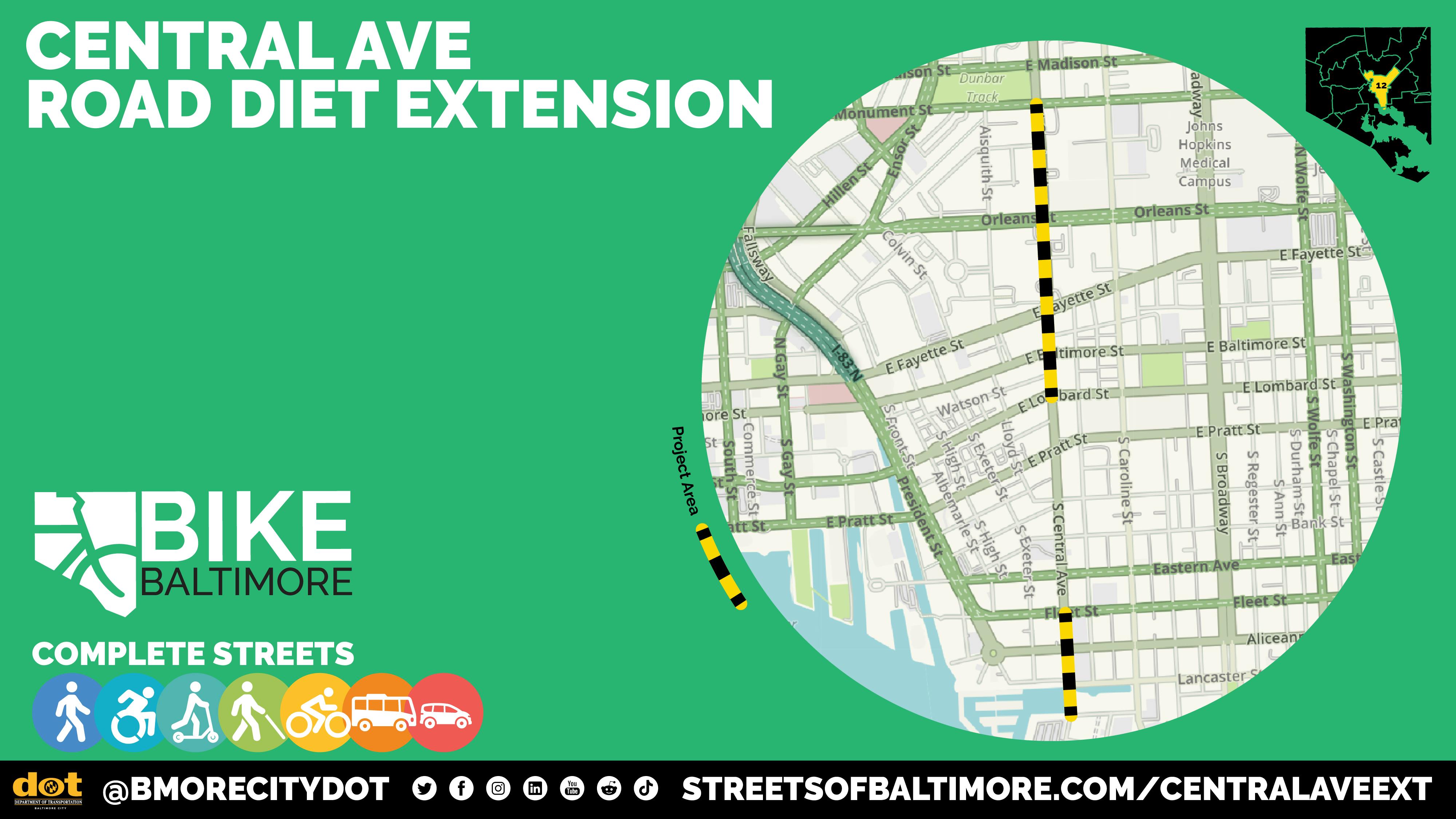 The project is located along Central Avenue in Baltimore’s 12th City Council District and the 46th State Legislative District. It will be built in two main segments: