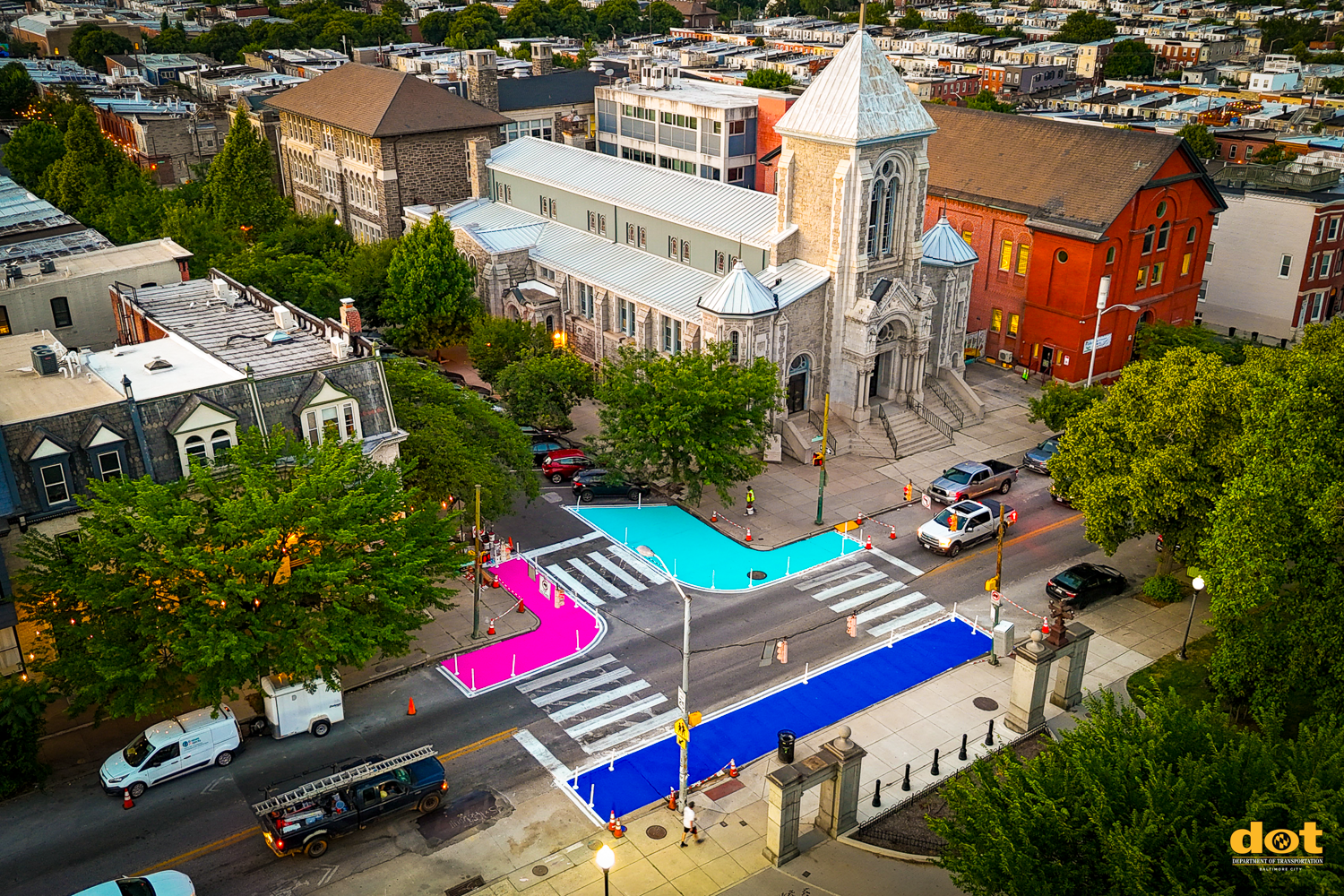 A bold transformation at the intersection of Baltimore St & Lakewood Ave—this permanent public art and streetscape project by Graham Projects, in collaboration with the Patterson Park Neighborhood Association, combines traffic calming with creative placemaking to turn a standard crossing into a vibrant, community-centered space. This project was completed in June 2024.