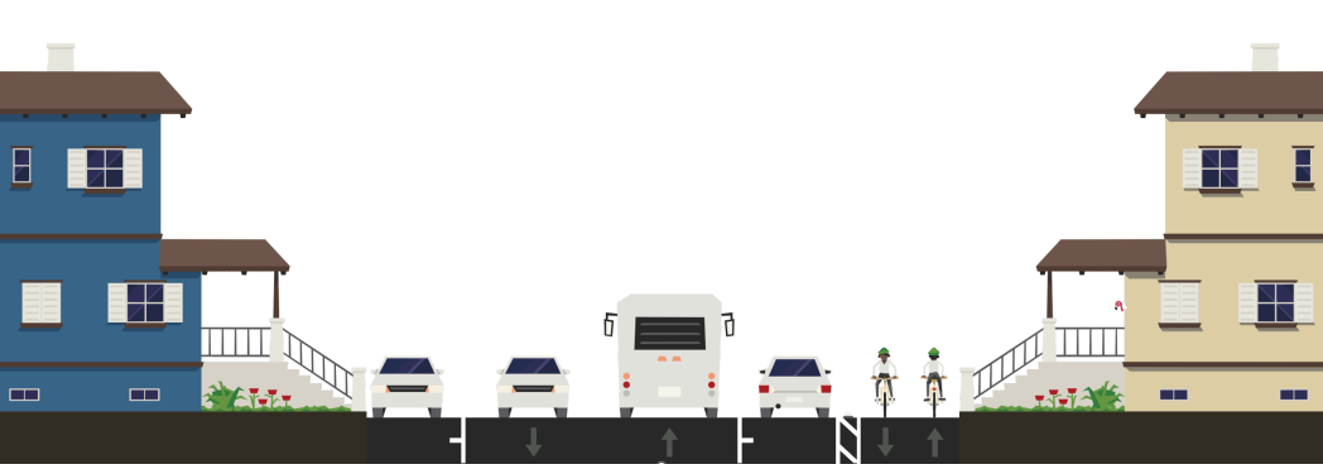 As part of all resurfacing project, BCDOT reviews the corridor for Complete Streets treatments. Often this includes routine improvements like adding or refreshing crosswalks, narrowing travel lanes, and/or installing bump outs. Sometimes, depending on the context, more significant adjustments—ones that change the roadway configuration—are required. For example, if the project is on the bike master plan.